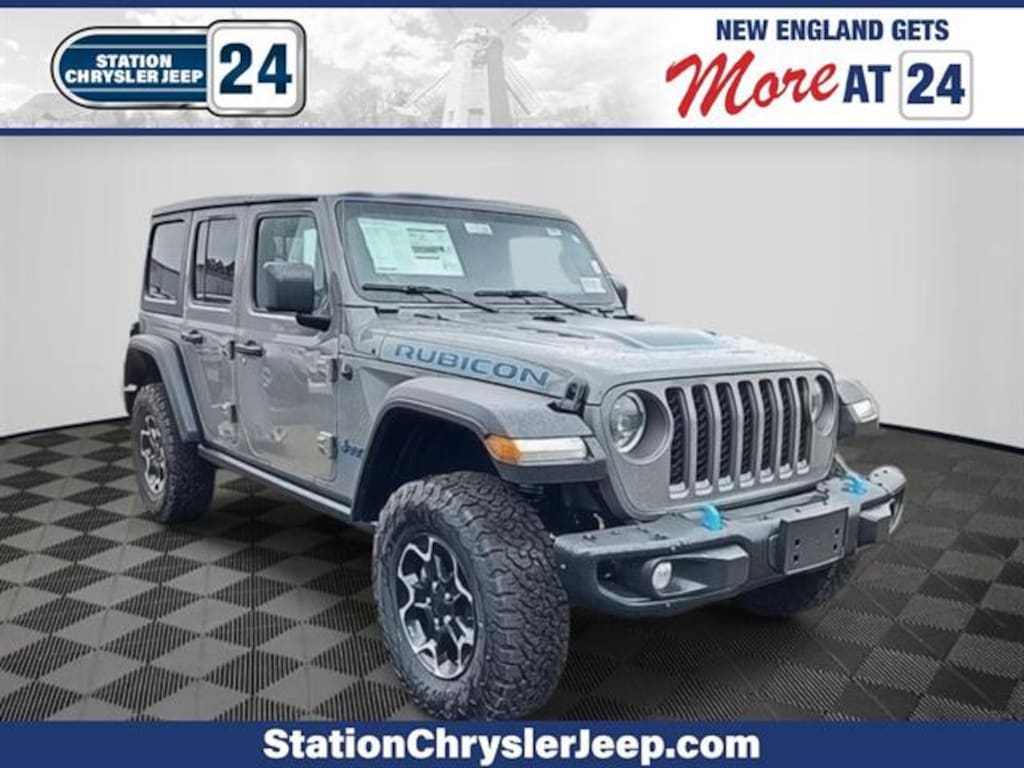 Sting-Gray Clearcoat 2023 Jeep Wrangler Rubicon 4xe 4WD 8-Speed Automatic 2.0L I4 DOHC 2.0L I4 DOHC. Station Chrysler Jeep is Massachusetts's Premier Family-Owned New Chrysler Jeep and Used Car Dealer, serving the needs of customers from Mansfield, Foxboro to Norwood, Plainville, Attleboro all the Greater Boston Rhode Island area, and everywhere in-between. In addition to sales, we also offer a state-of-the-art service department with all Chrysler Jeep Master-Certified Technicians, an Auto center for quick in-and-out service, and of course an outstanding Parts department. Station Chrysler Jeep is your one-stop-shop for all your automotive needs so don't hesitate; Call us now and ask to speak with one of our fully certified and customer-friendly Sales or Service Consultants. From there, you will be able to schedule a test drive, Brake job or Oil Change of any of our 11 locations. We have New and Pre-Owned vehicles on the lot!